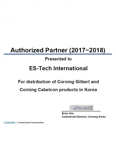 Corning 대리점 인증서