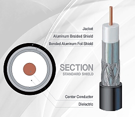 23 AWG Copper clad steel center conductor, gas foamed polyethylene